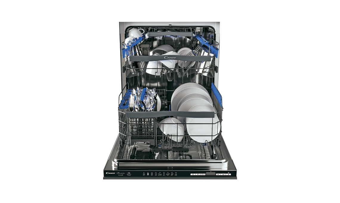CLASSE C - Ad incasso totale, per 16 coperti, la lavastoviglie CELDIMN 4D622PBE, gestibile anche da remoto, ha programma rapido di 24 minuti [Candy, cm 60x55x82-89h]