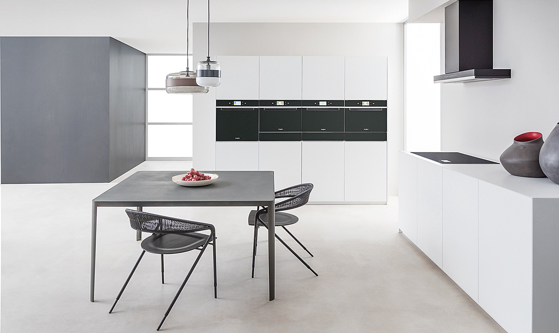 La gamma Collection Cooking Suite W 11 di Whirlpool comprende forno da incasso, piano a induzione, microonde combinato, cappa e macchina del caffè, che comunicano tra loro grazie a sensori e all’app 6th Sense Live. Il forno può avere il Google Assistant per il controllo vocale. La suite offre il controllo da remoto e i display sono invisibili a elettrodomestici spenti.