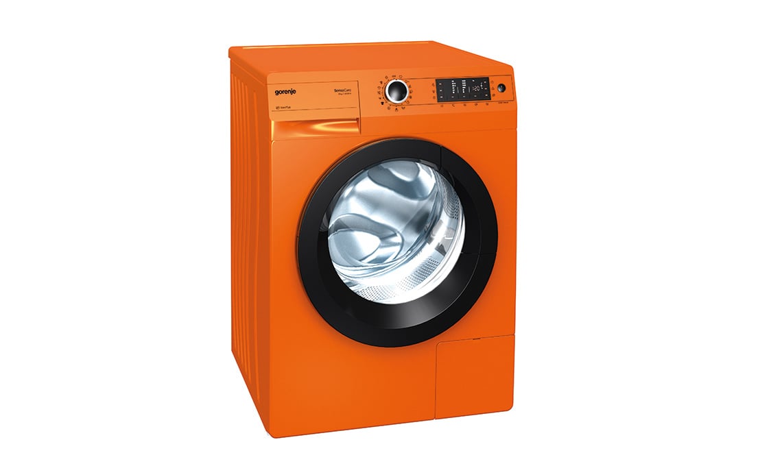 La lavatrice arancione di Gorenje W8543LO, da 8 kg, ha un programma che assicura che l’interno rimanga pulito e sterile, così la biancheria esce sempre ben profumata [Gorenje, cm 60x60x85h €549].