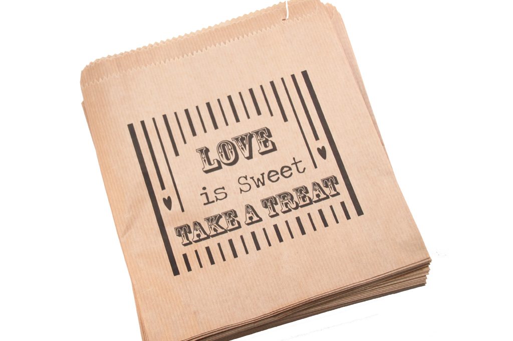 Per i confetti, simpaticissime le bustine di carta ecologica [Luck and Luck, cm 17x17 €5 il set da 50 pezzi]