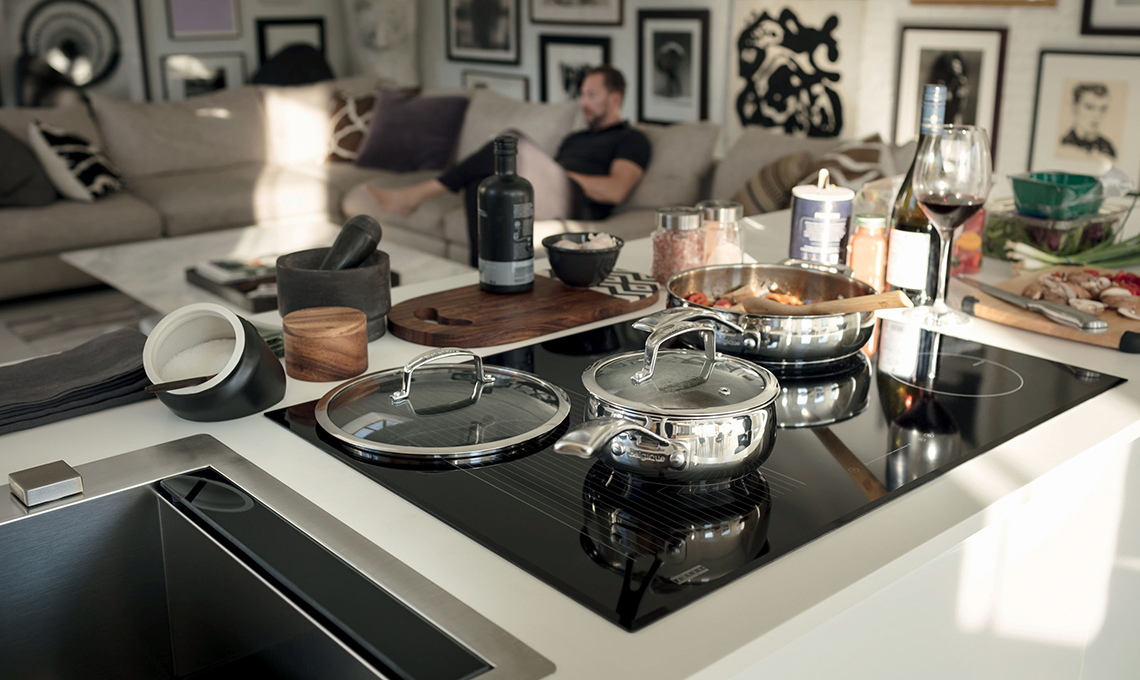 le varie zone di cottura riconoscono immediatamente il fondo della pentola e generano il campo magnetico solo lì;