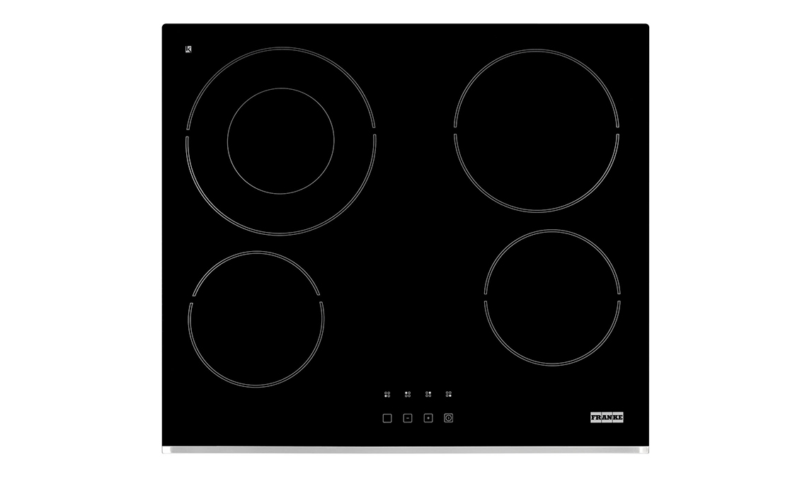 Piano cottura in vetroceramica FHC 604 4C T BP da cm 58x51 ha 2 piastre da 1200W, 1 piastra da 1800W e 1 piastra da 750W/2200W, con