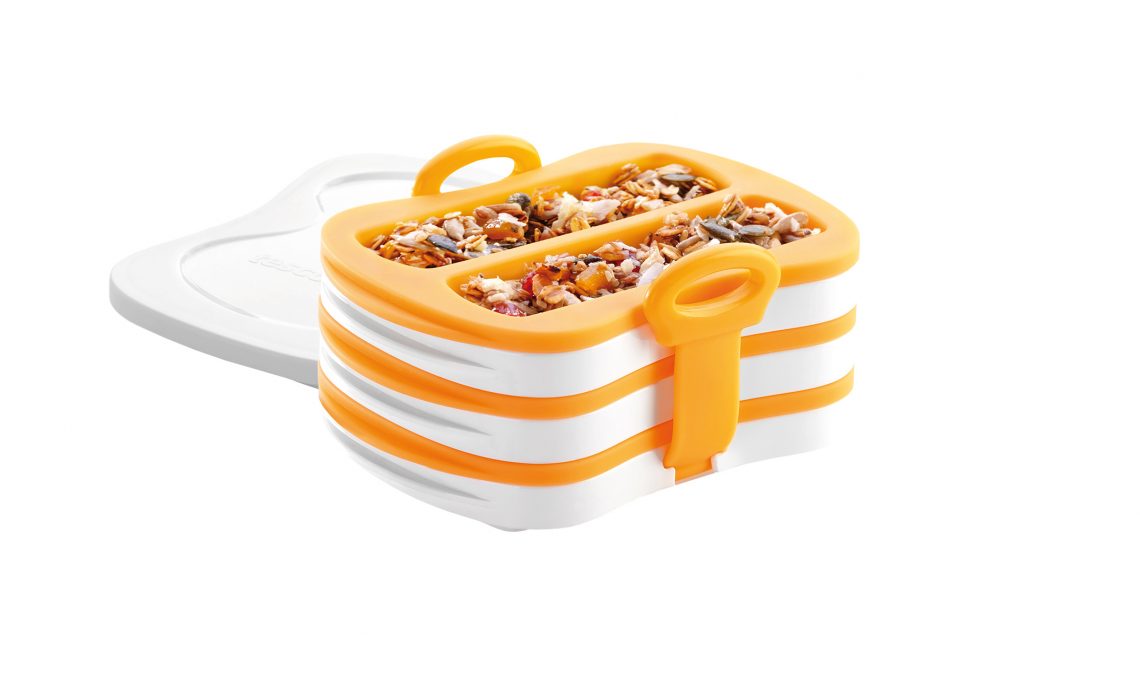 Grazie agli stampi morbidi in silicone con pressa della linea 'Della Casa', puoi preparare supergolose barrette snack alla frutta, al cioccolato o al caffè.