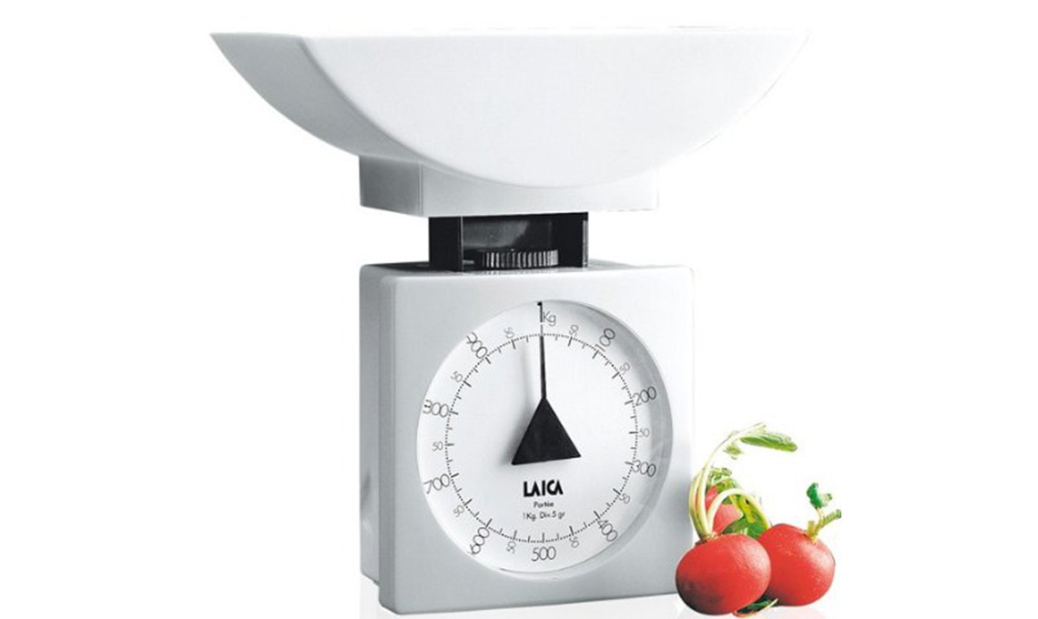 Linee classiche con effetto "total white" per la bilancia meccanica di Laica. Ciotola con 5 kg di portata.
