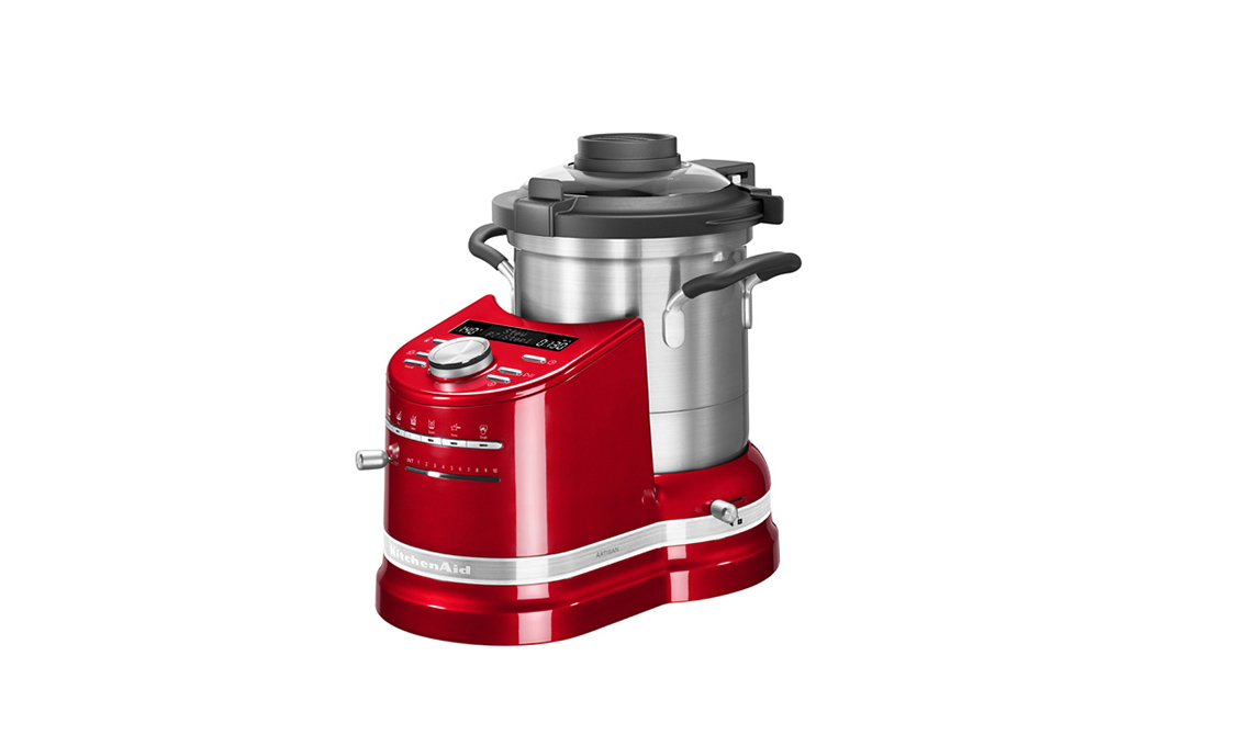 Consultabile per le ricette via app, BimbiTM6 cuoce anche sottovuoto. E’ dotato di contenitore in acciaio inossidabile con sistema di riscaldamento e sensore di temperatura integrati (Vorwerk € 1.399).