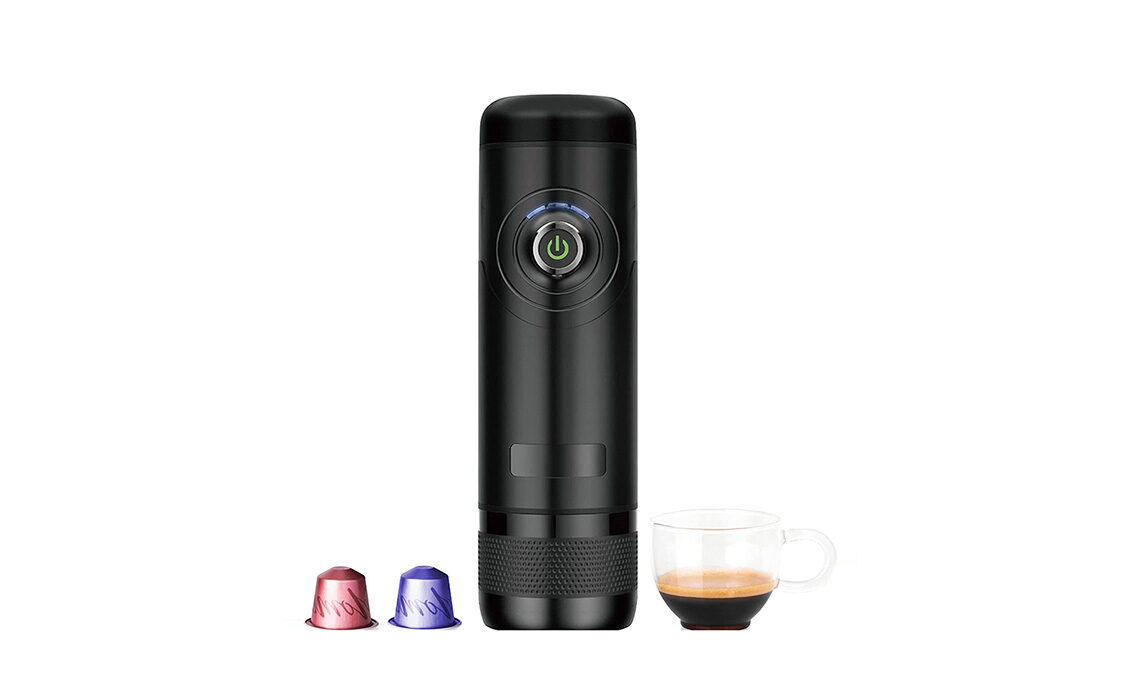 Caffè dove vuoi con la macchina a batterie ricaricabili: funziona con capsule e si scalda in un minuto. La base fa da bicchierino [be smart® su Amazon].