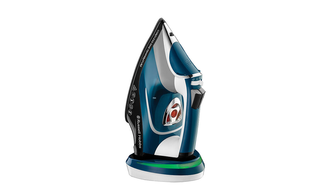 Ha base di ricarica rapida il ferro One Temperature, che ti permette di stirare i tessuti utilizzando un’unica temperatura [Russell Hobbs].