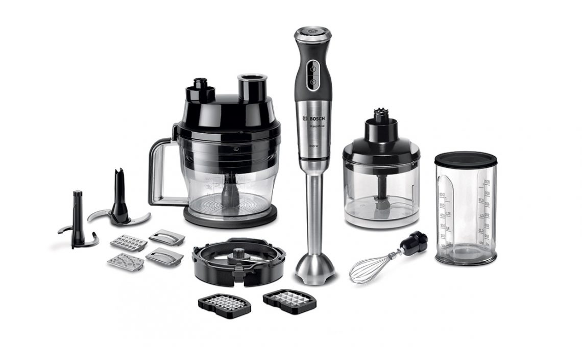 Il pezzo ‘centrale’ è un frullatore a immersione, ma la costellazione di accessori che compongono il modello MSM881X2 ne fanno un vero robot multifunzione: ci sono l’accessorio Kubixx che taglia frutta e verdura in cubetti, frusta per miscelare, minitritatutto, attrezzi per impasti, grattugia a grana grossa. Potenza 800 watt e 12 velocità, più pulsante turbo [Bosch €199].