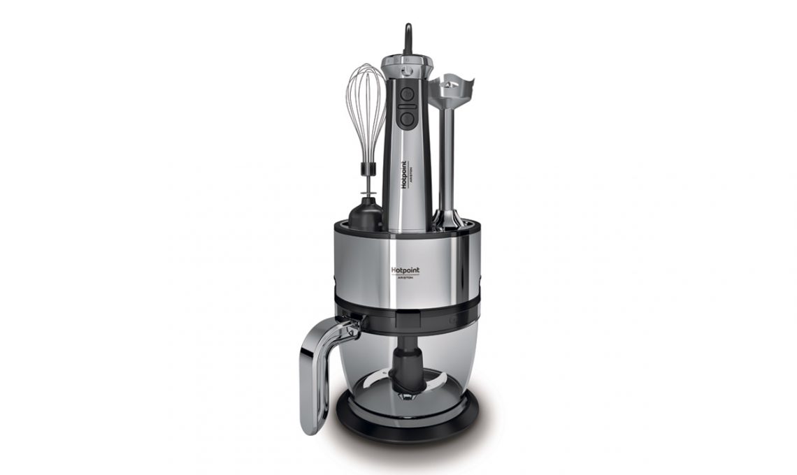 Grazie alla funzione Soft Start, il frullatore a immersione HB 0805 UP0 ha una partenza delicata, per evitare che il cibo fuoriesca. Potenza 800 watt, 6 velocità+turbo, un recipiente da 1.500 ml e uno da 500 ml, bicchiere da 800 ml, lama per tagliare, disco per tritare e affettare e frusta [Hotpoint €129,90].