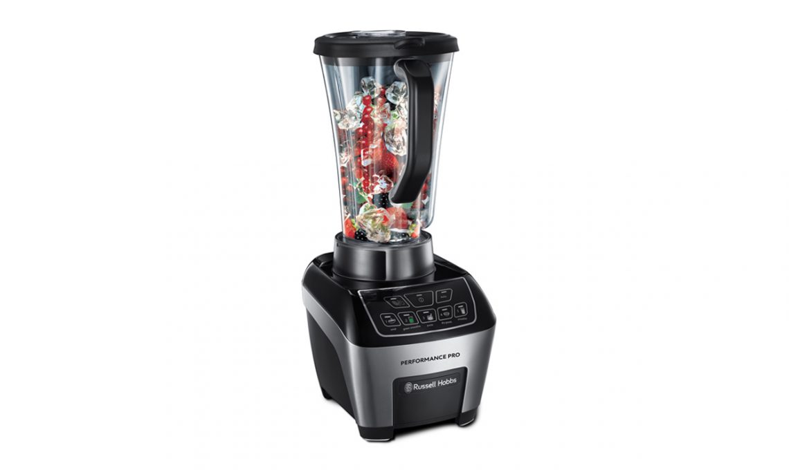 Il frullatore Performance Pro con bicchiere a tre lati per massimizzare l’effetto vortice, ha 5 velocità ed è in grado di lavorare qualsiasi ingrediente, dalla frutta fibrosa al ghiaccio [Russell Hobbs €199].