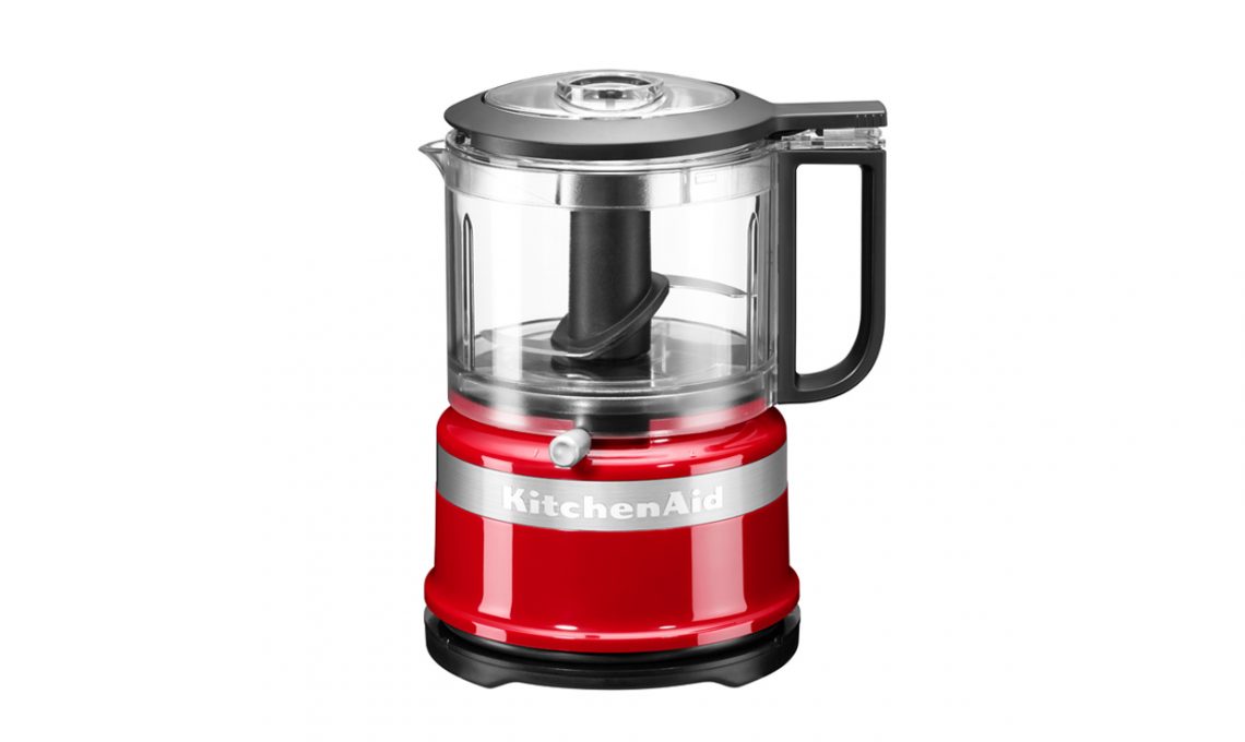 Il tritatutto Mini Food Processor KFC3516 si aziona comodamente con una mano grazie ai pulsanti nella parte superiore. Ha due velocità: una per tritare in modo classico, l’altra per ridurre gli ingredienti in purea. La ciotola è capiente 950 ml [KitchenAid €79].