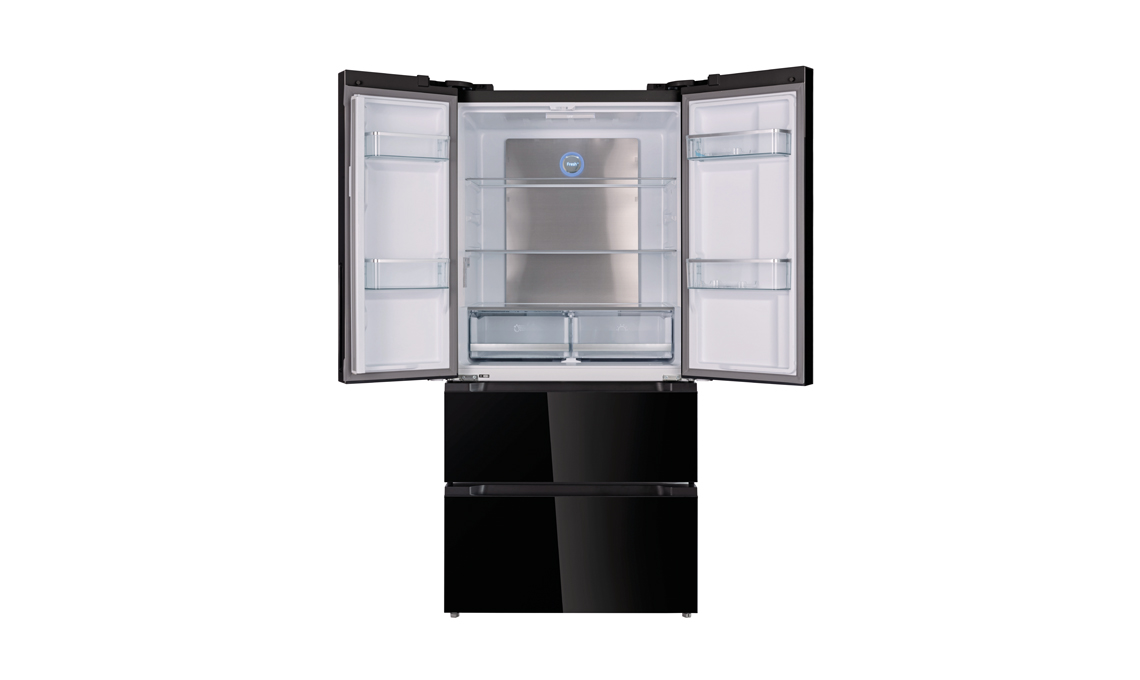 Il frigorifero total no frost. Il modello FB83832 French Door ha schienale in alluminio, materiale igienico e che trattiene il freddo anche se si apre di frequente, così gli alimenti non subiscono sbalzi di temperatura e si conservano perfettamente. Capiente 436 litri, ha funzione fast cooling da attivare quando riponi i cibi dopo aver fatto la spesa, perché abbassa velocemente la temperatura. In classe F, ha frontali in inox e vetro nero [GRF, cm 83,6x63,6x183h]