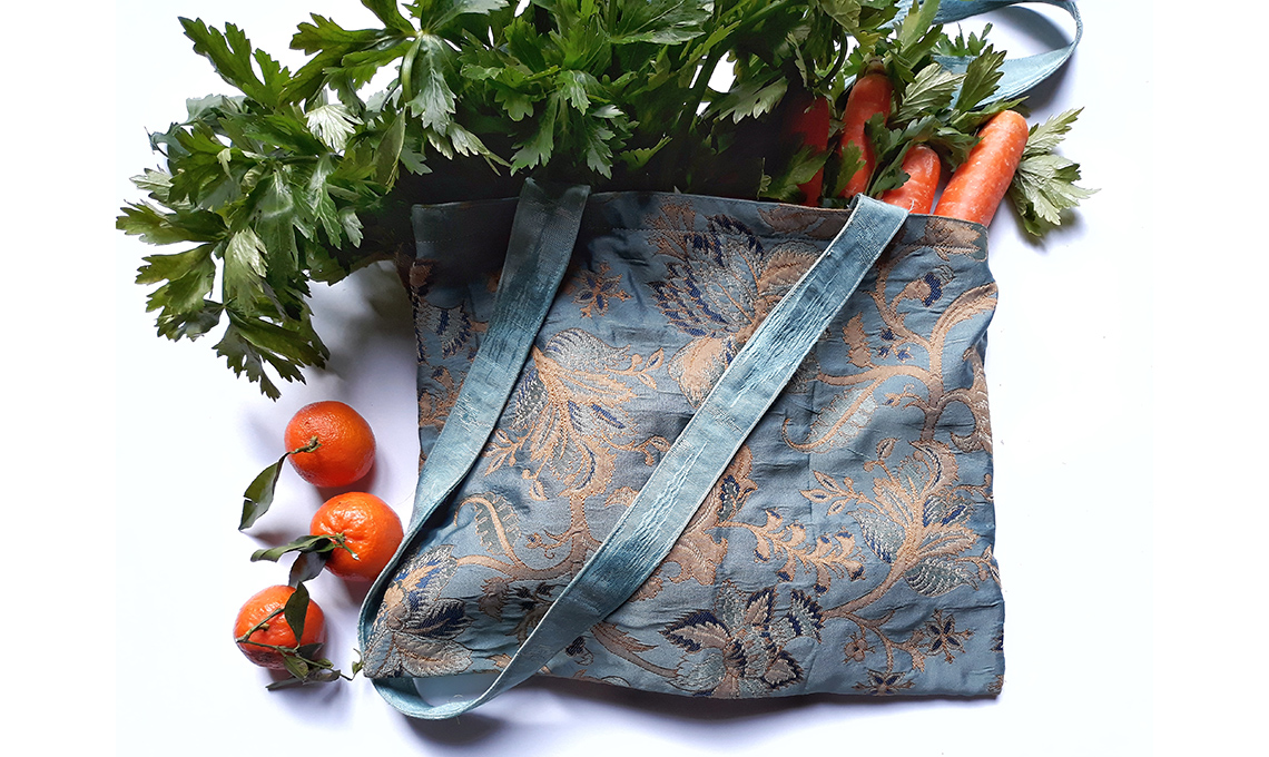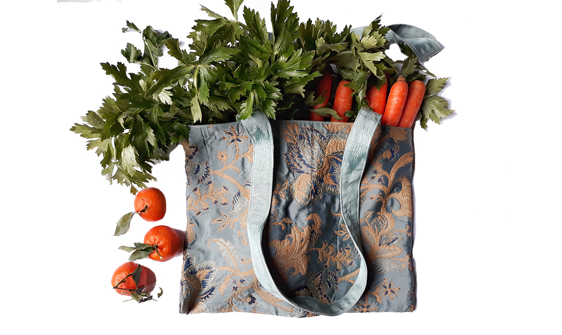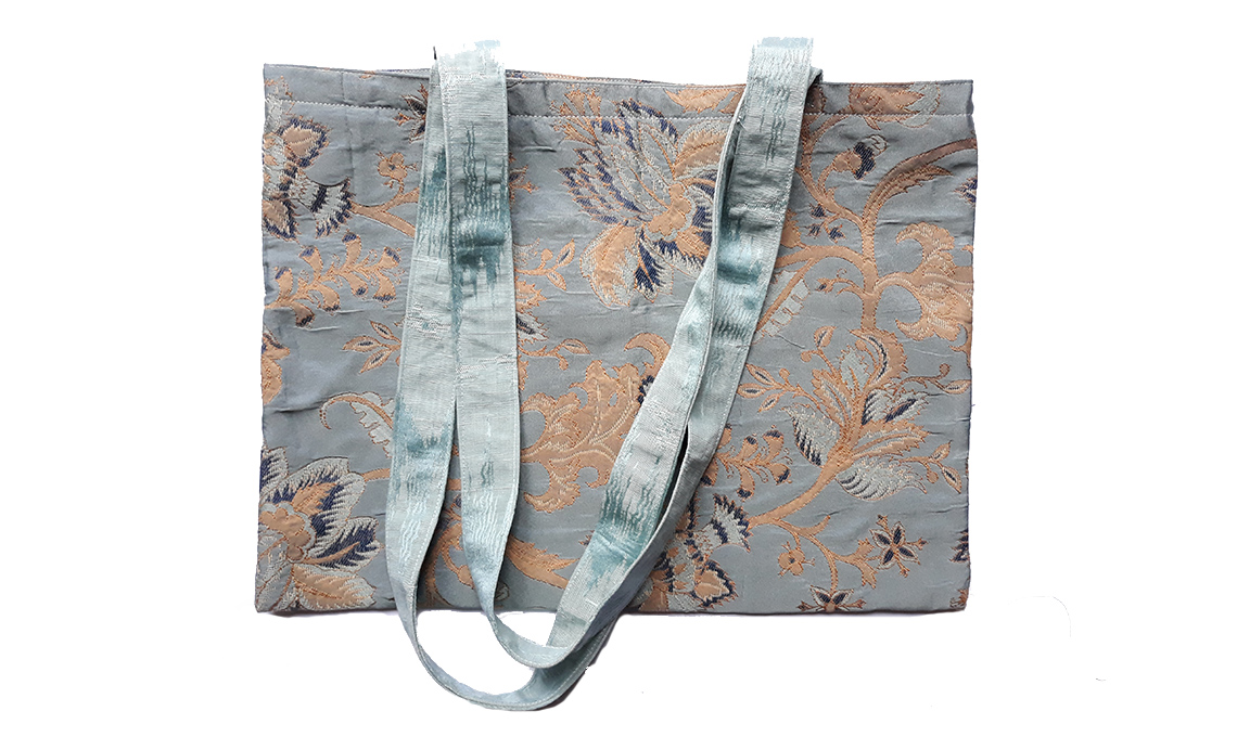 Per le mie shopper ho usato dei vecchi tessuti di arredo che mi sono stati regalati da un tappezziere che purtroppo ha chiuso la sua bottega nel cuore di Roma. Si tratta di tessuti di cotone, lino, velluto, seta, a motivi floreali o damascati in varie tonalità.