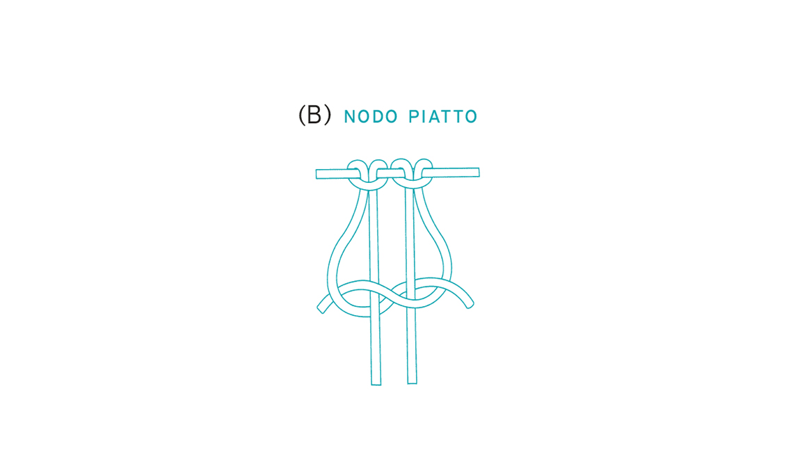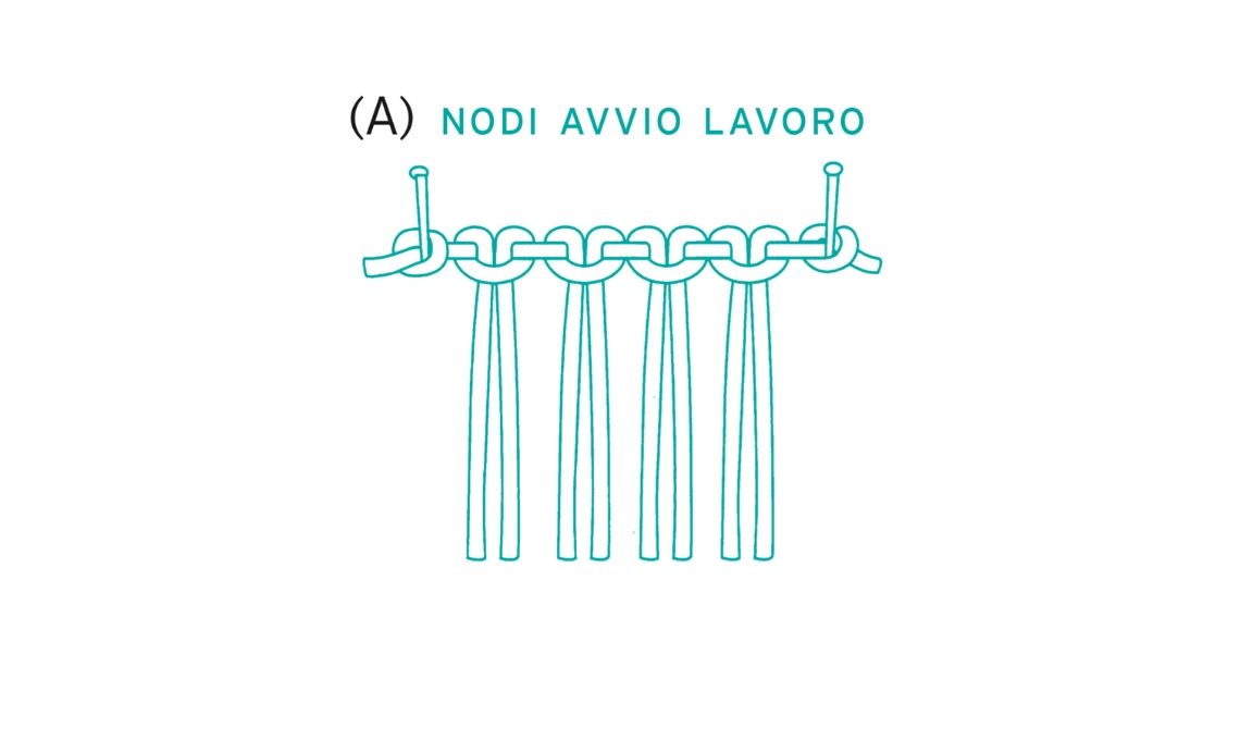 Nodi utilizzati: Nodi di avvio (schema A) Nodo piatto (schema B) Nodo cordoncino a barrette oblique (schema H)