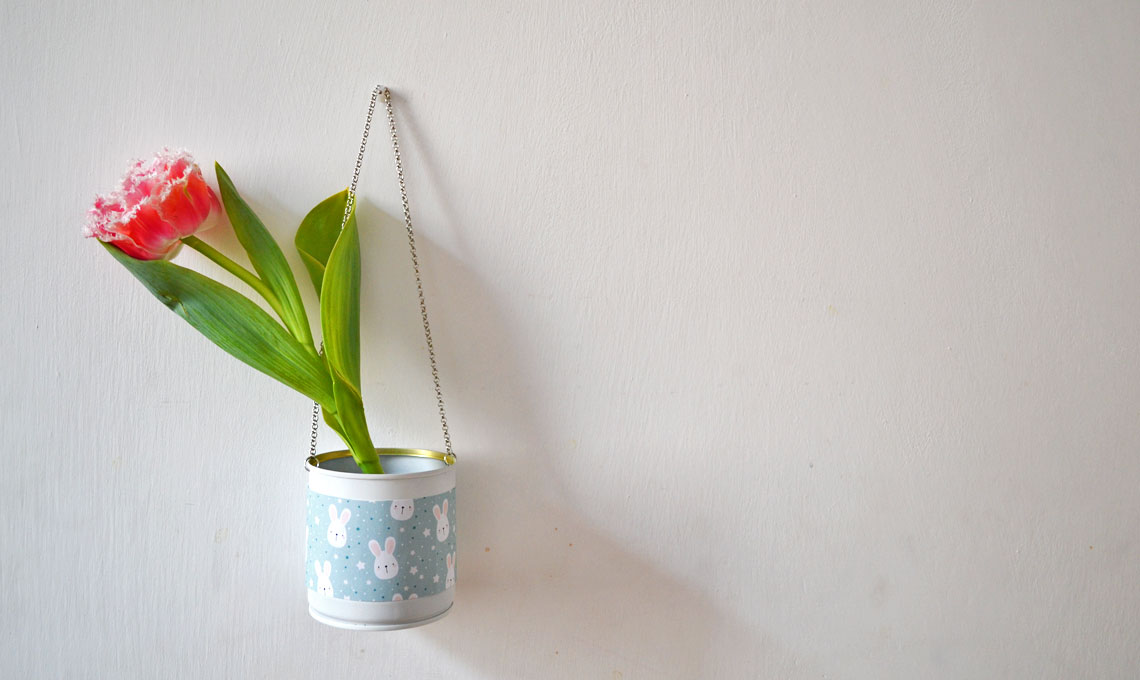 La prossima volta che usi una lattina di piselli, ceci, passata, conserva la lattina. Lavala bene e dipingila con la vernice spray. Poi taglia una striscia di carta da regalo ed incollala tutto attorno al barattolo, come fosse l’etichetta. Con un punteruolo pratica due forellini simmetricamente vicino al bordo superiore. Procurati una catenella e fissane le estremià ai due fori. Avrai realizzato così un packaging di riciclo di grande effetto che potrà essere riutilizzato in mille modi: da portapenne a vaso appeso.