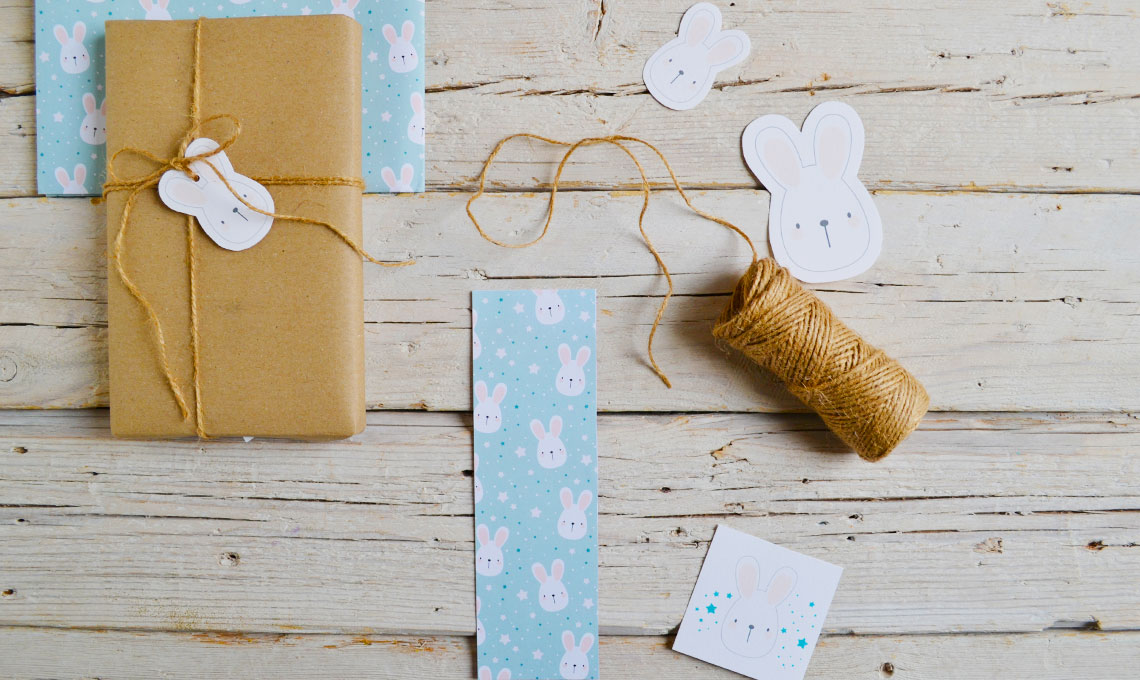 Se il regalo è un libro, impacchettalo con normale carta da pacchi. Poi taglia una striscia di cartoncino lunga quanto il lato lungo del libro. Ed incollaci sopra (la colla stick andrà benissimo) una striscia delle stesse dimensioni ricavata dalla tua bellissima carta da regalo. In questo modo semplicissimo avrai realizzato un segnalibro su misura! Usa poi il segnalibro per decorare il pacchetto, chiudilo con lo spago ed una tag abbinata.