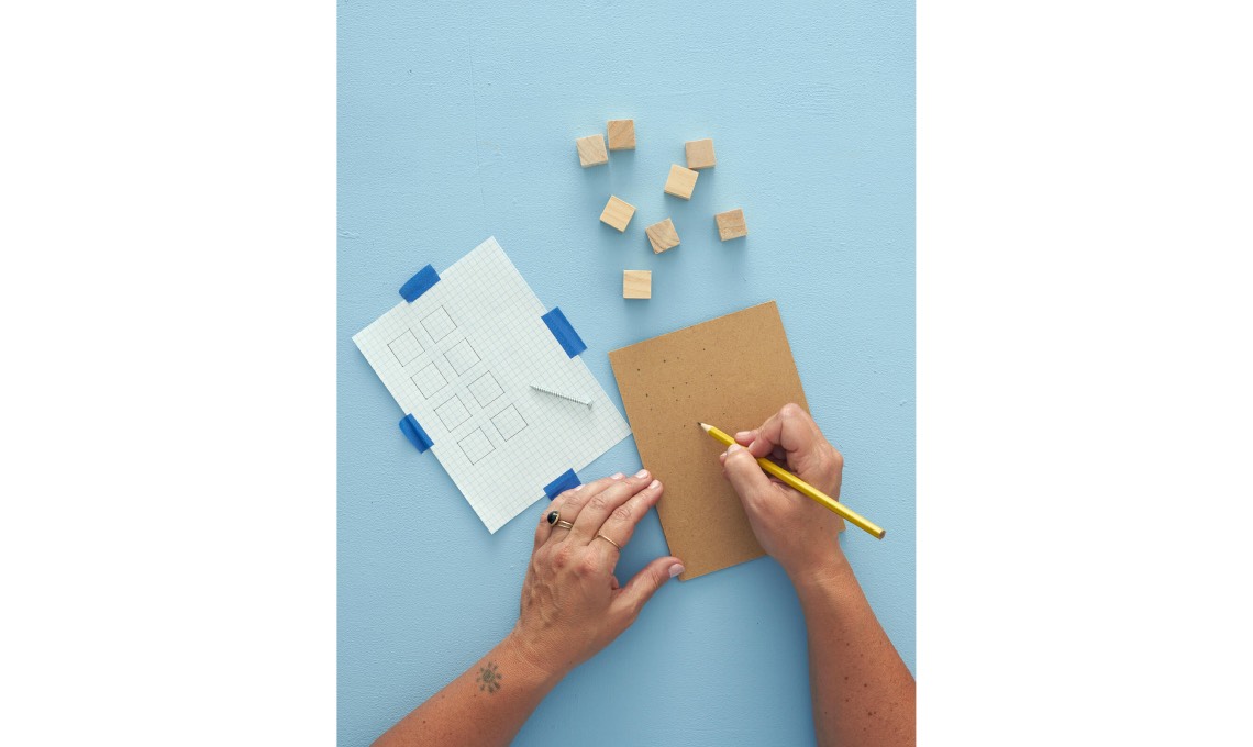 4. Con la matita ripassa bene i punti di riferimento incisi sul pannello, in modo da avere l’esatta posizione dei cubetti.