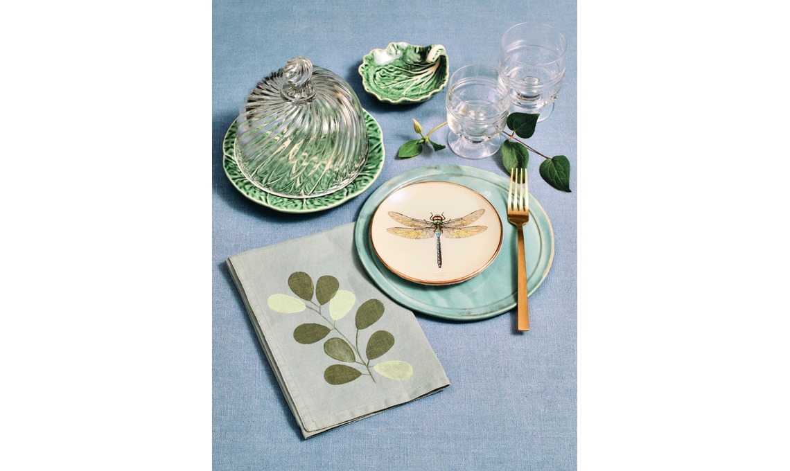 IDEA 2: CON LA SPUGNA. Piattino con libellula, piattino e foglia