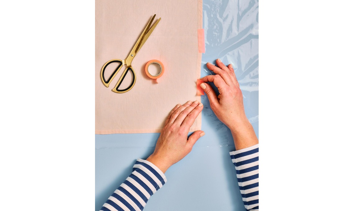 1. Proteggi il tavolo con un telo di plastica. Stendi sopra il tovagliolo stirato e fissalo con il nastro adesivo.