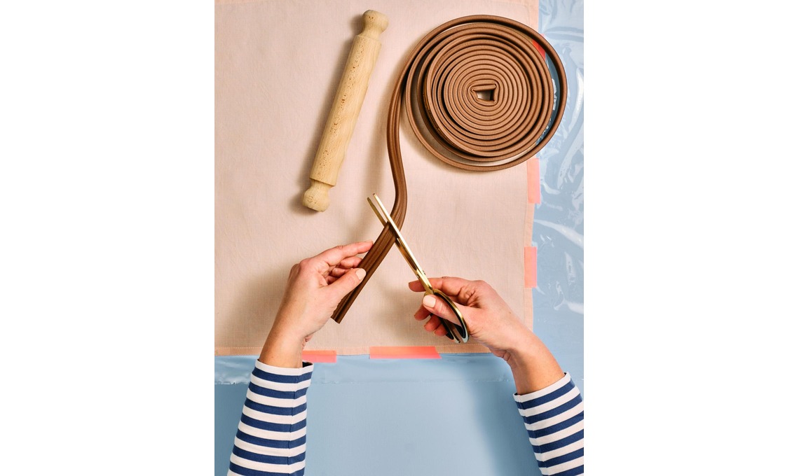 2 Taglia una striscia di guarnizione di gomma in misura della circonferenza del matterello e incollala.
