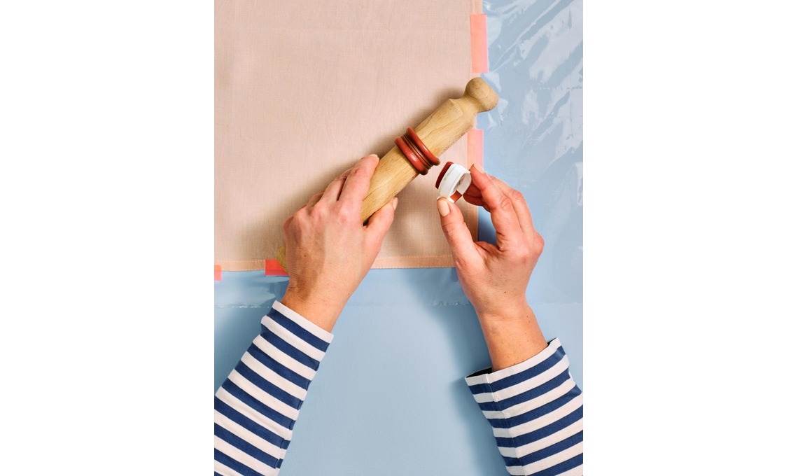 4 Partendo dal lato inferiore del tovagliolo, fai scorrere il matterello sul tessuto. Esercita una pressione costante.
