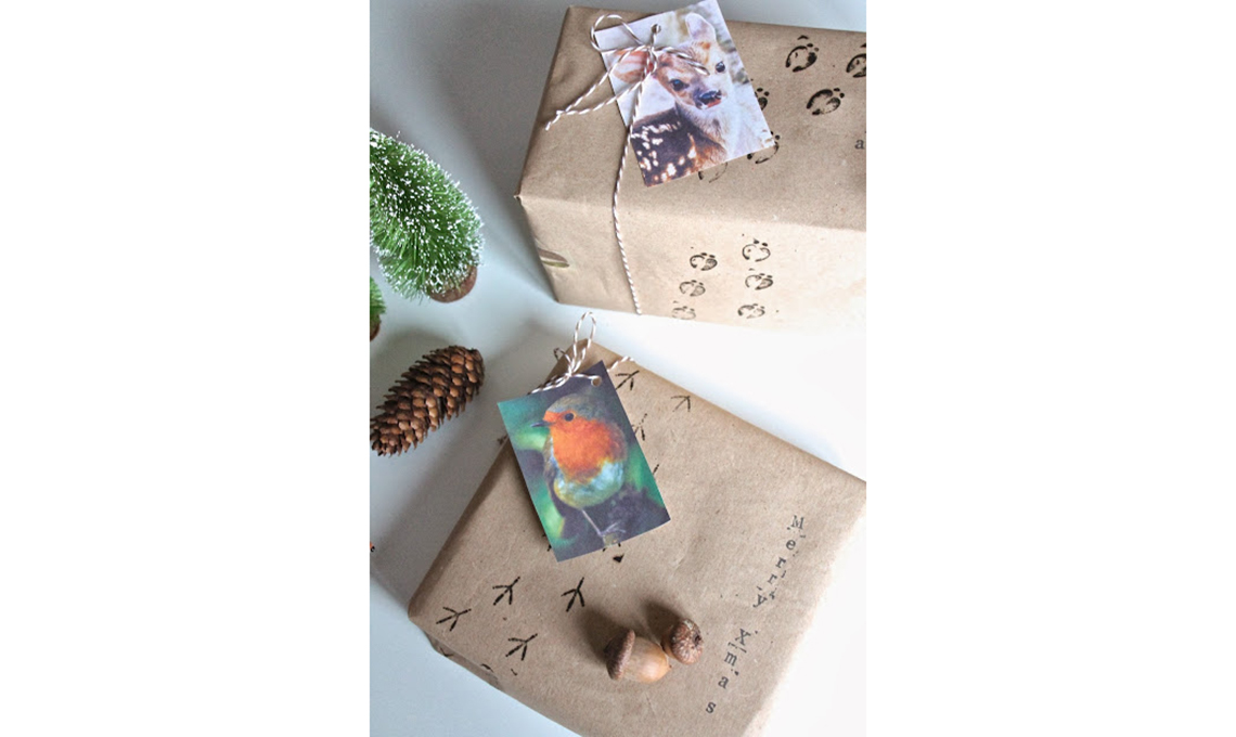 - Per gli amanti degli animali una decorazione a tema: i timbri a forma di orme, il washi tape animalier e biglietti a tema, ricavati da giornali o libri.