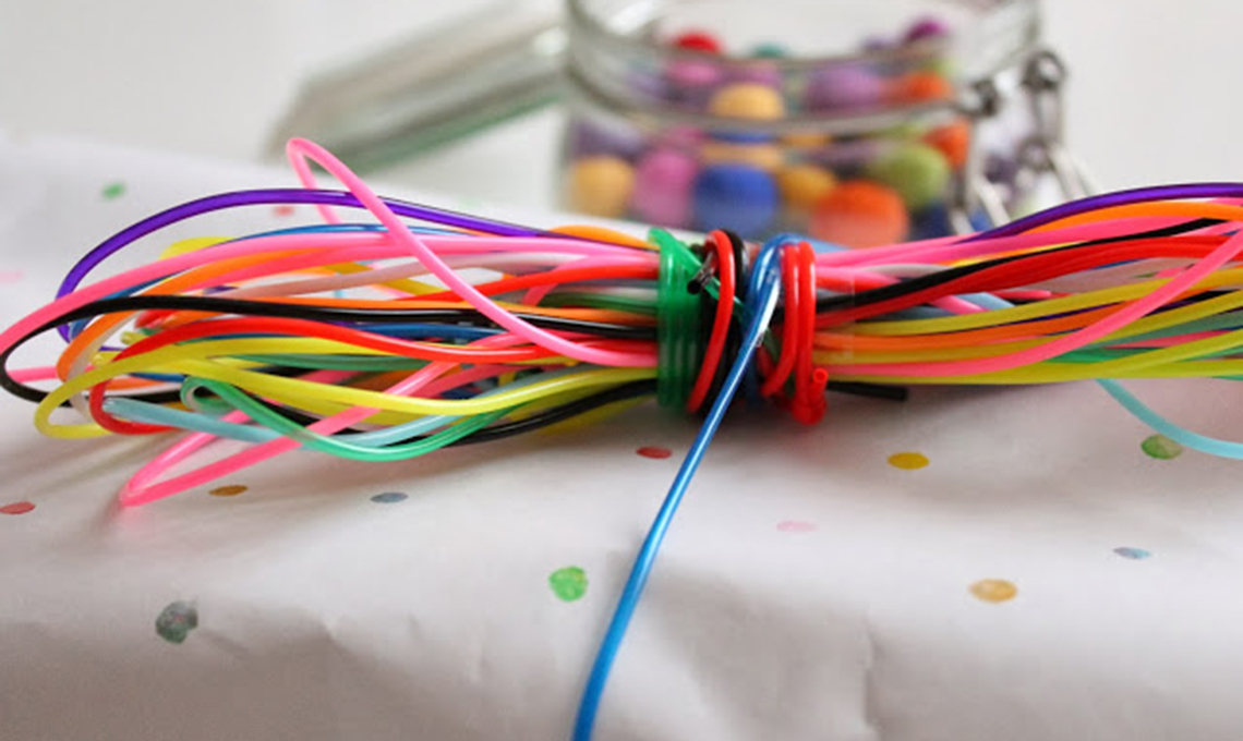 - Con i gommini delle matite e dei tamponi colorati possiamo creare originali e colorati pattern e divertenti fiocchi con avanzi di lana o i fili di plastica colorata degli Scoobydou.