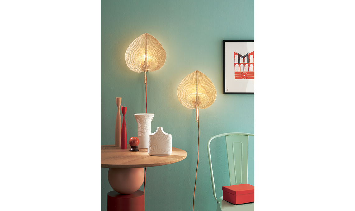 Sono un omaggio alla storica ‘Uchiwa lamp’ di Ingo Maurer le applique con i ventagli di paglia. Per fissarli alla parete usa le squadrette a U: con le fascette trasparenti da elettricista fissa il ventaglio alla squadretta, posiziona il portalampada facendo passare il cavo nel foro, quindi avvita la squadretta alla parete con i tasselli.