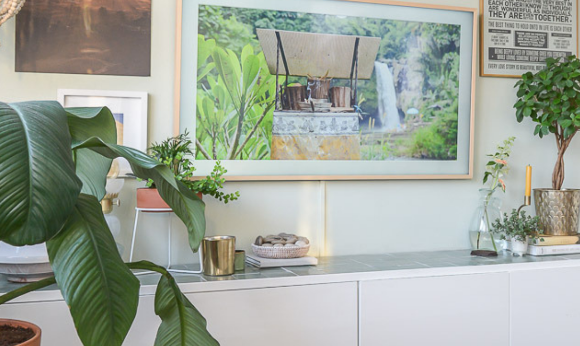 Personalizzare è la parola chiave! Personalizzare vecchi mobili sgangherati scovati vicino al cassonetto riportandoli a nuova vita usando una latta di colore. Oppure il classico Hack di arredi low cost. Ad esempio la soluzione tv Besta di Ikea è stata rinnovata incollando delle piastrelle sul piano. Una soluzione fresca, pratica e chic.
