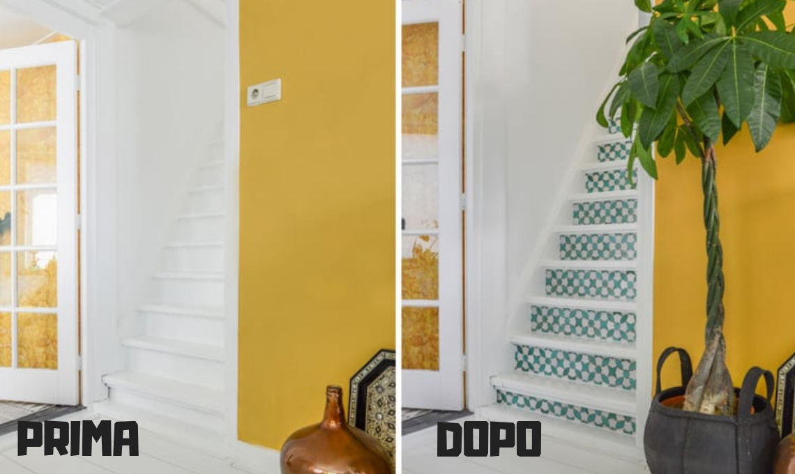 Questa è in assoluto la soluzione più low cost di tutte. Souraya li usa ovunque. Sui mobili, sui muri e...sulle scale! Per rinnovare le scale del suo appartamento ha usato un bordo adesivo effetto cementine applicandolo nella parte anteriore del gradino: pratico, veloce e di forte impatto!