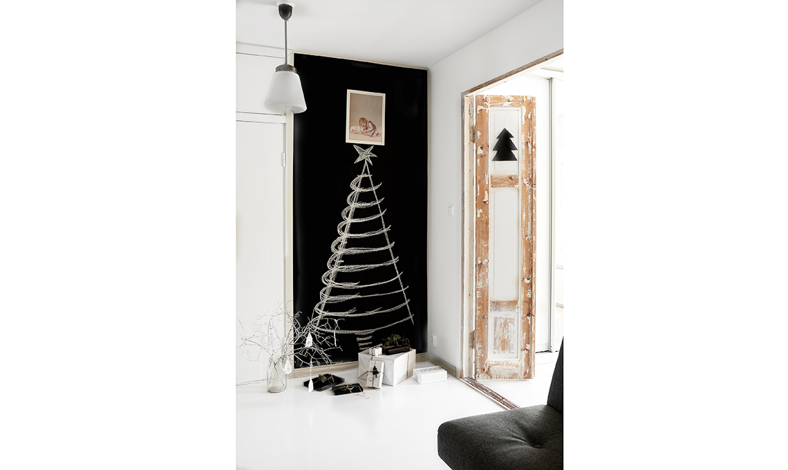 Se hai una parete dipinta con la vernice lavagna, non perdere tempo! Disegna con un gessetto bianco un albero di Natale. Una decorazione velocissima e di sicuro effetto wow!