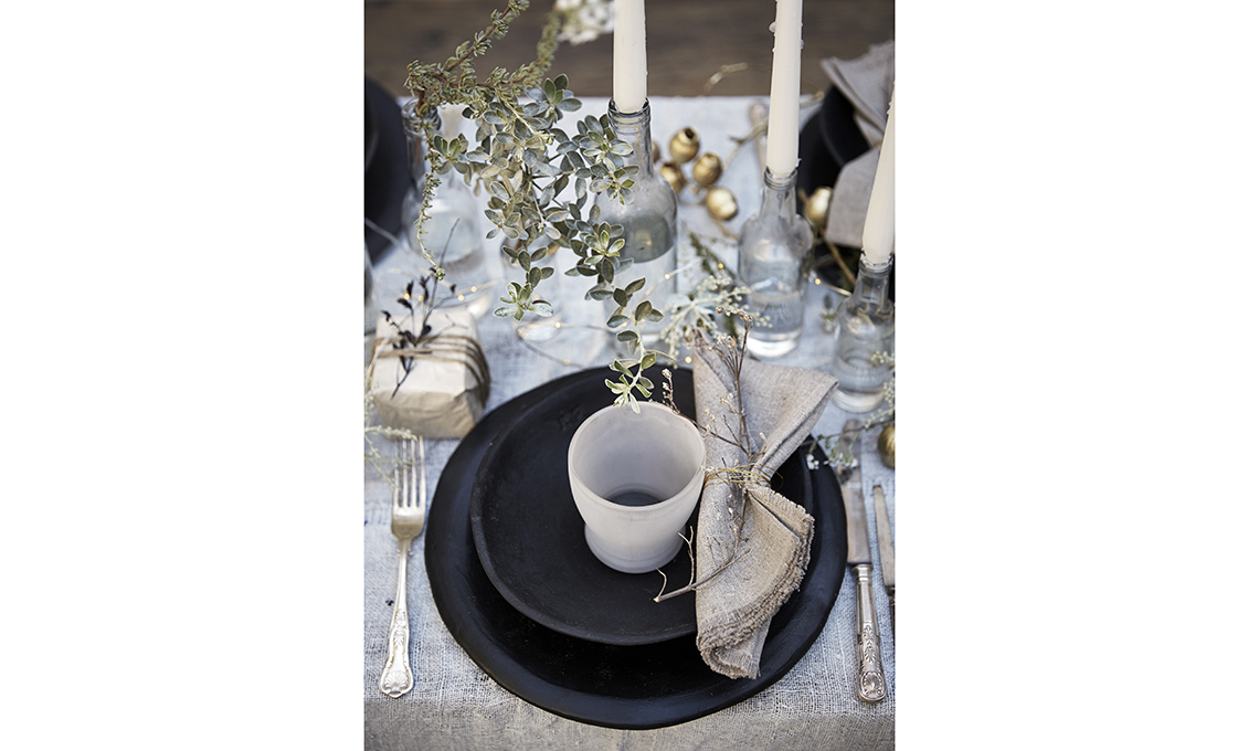 Sulla tavola informale, lega i tovaglioli con spago o filo dorato e decorali con rametti e bacche. Se scegli rametti di aromatiche aggiungerai un tocco profumato per i tuoi ospiti.