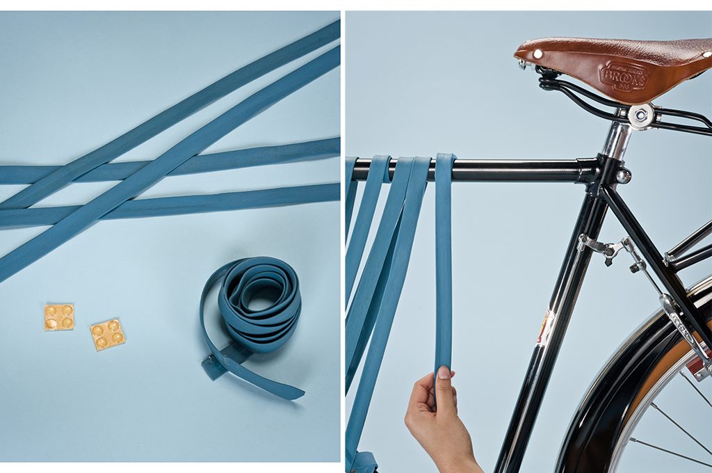 Come si fa: posiziona il gommino antiscivolo in prossimità del punto di contatto tra il montante verticale che sostiene il manubrio e il tubo orizzontale. Fai passare la fettuccia elastica dall’alto verso il basso, lasciando circa 2/3 cm di distanza tra ciascun giro di materiale. Non è necessario incollare o fissare le estremità degli elastici, basta semplicemente sovrapporle: la tensione della fascia e la natura del materiale ne provocheranno il bloccaggio. Dopo aver completato il lavoro in senso verticale, per tutta la lunghezza del telaio, procedi orizzontalmente.