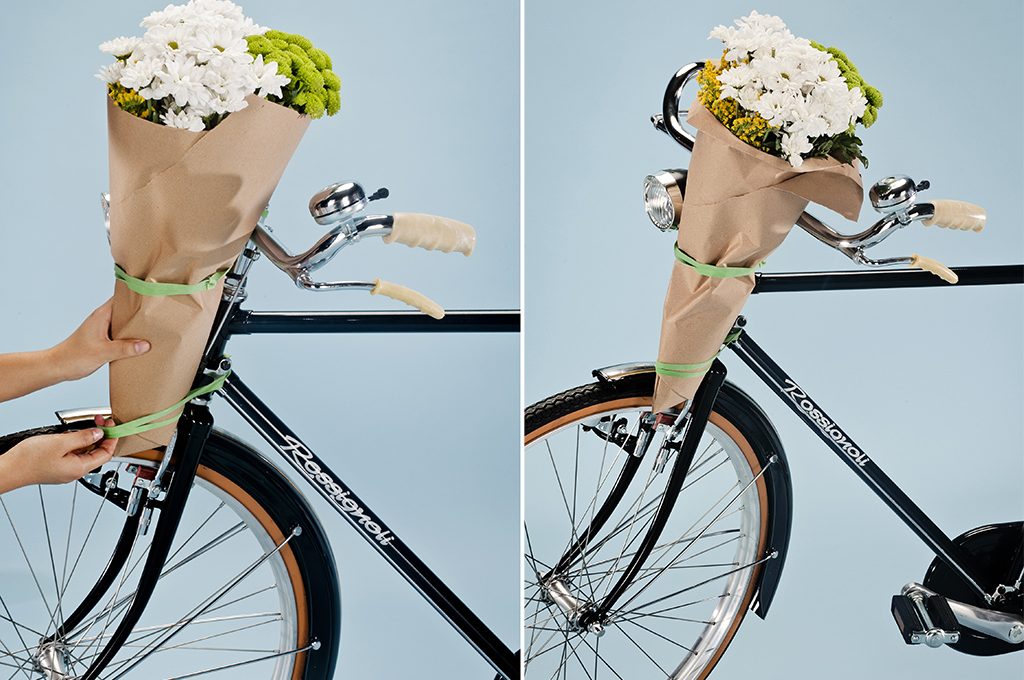 Come si fa: Hai comprato (o meglio... ti hanno regalato) un mazzo di fiori ma sei in bici? Nessun problema, fai così: fissa al manubrio due elastici colorati piuttosto distanziati fra loro (circa 15/20 cm) e, dopo averli sistemati accuratamente, infila il mazzo di fiori dall’alto. Una volta posizionato come più ti piace, basterà semplicemente la tensione degli elastici per bloccarlo.