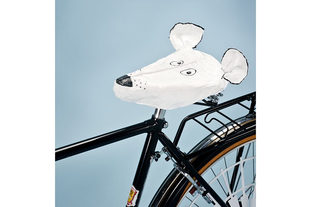 Come si fa: la prima cuffia ti servirà come base da personalizzare. Noi abbiamo deciso di trasformarla nel muso di un topolino: per ottenere le orecchie, ritaglia da una seconda cuffia due porzioni circolari (circa 4 cm ø) sfruttandone l’andamento curvo in prossimità dei bordi. Pratica due incisioni (di circa 3 cm) sulla cuffia-base in corrispondenza della posizione prevista. Inserisci in ciascuna il ritaglio (circa 0,5/1 cm di esso), in modo che la parte sporgente assomigli il più possibile a un padiglione auricolare. Richiudi con colla o con ago e filo. Infine, decora la cuffia col pennarello, disegnando naso, baffi e occhi. Grazie alla sua elasticità si adatterà perfettamente al sellino. I copriscarpe si personalizzano analogamente.