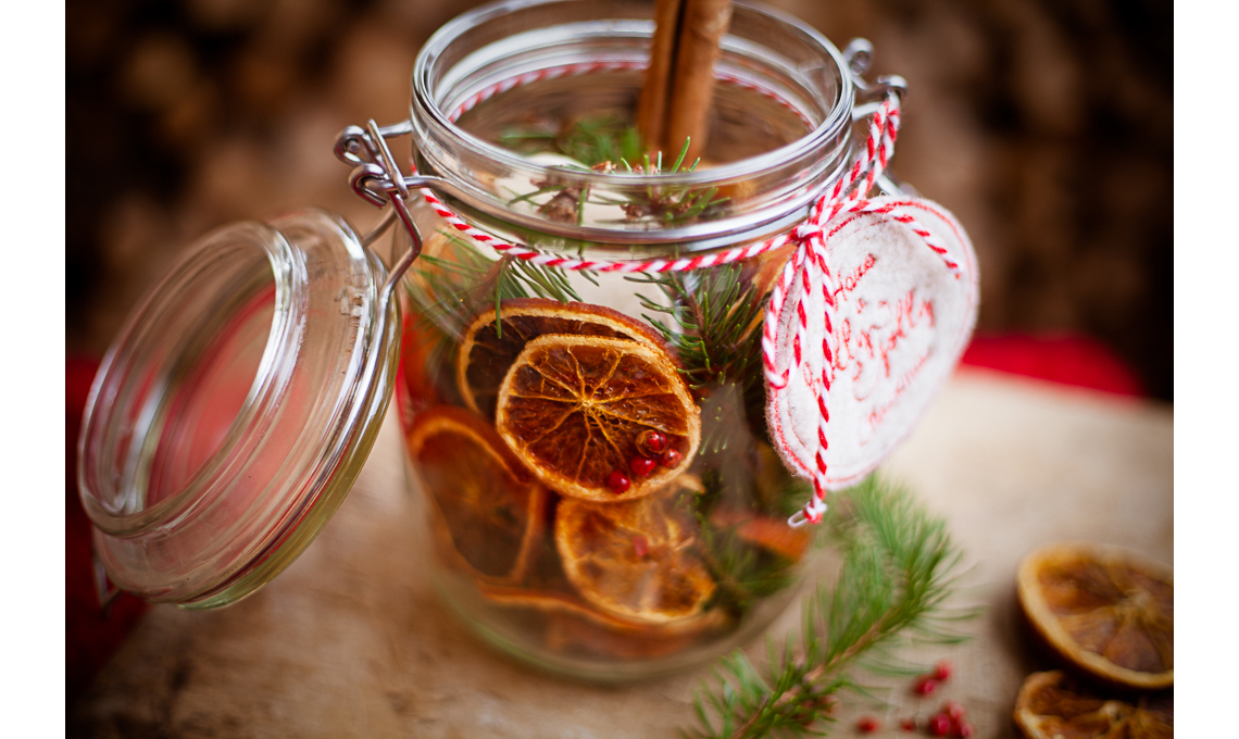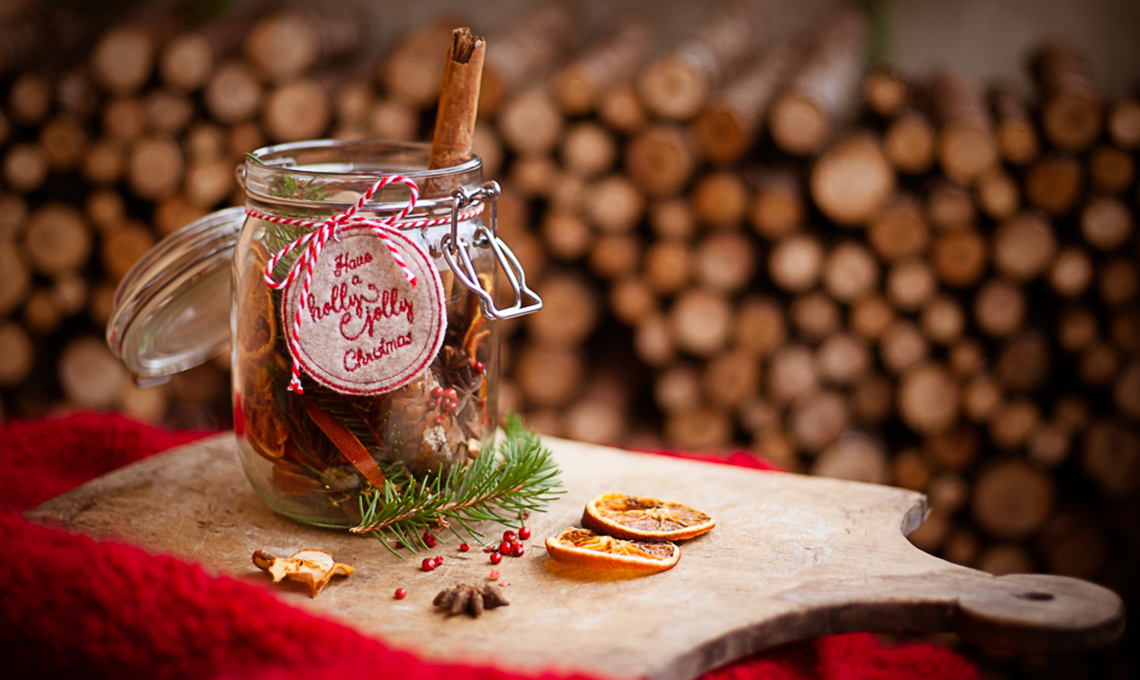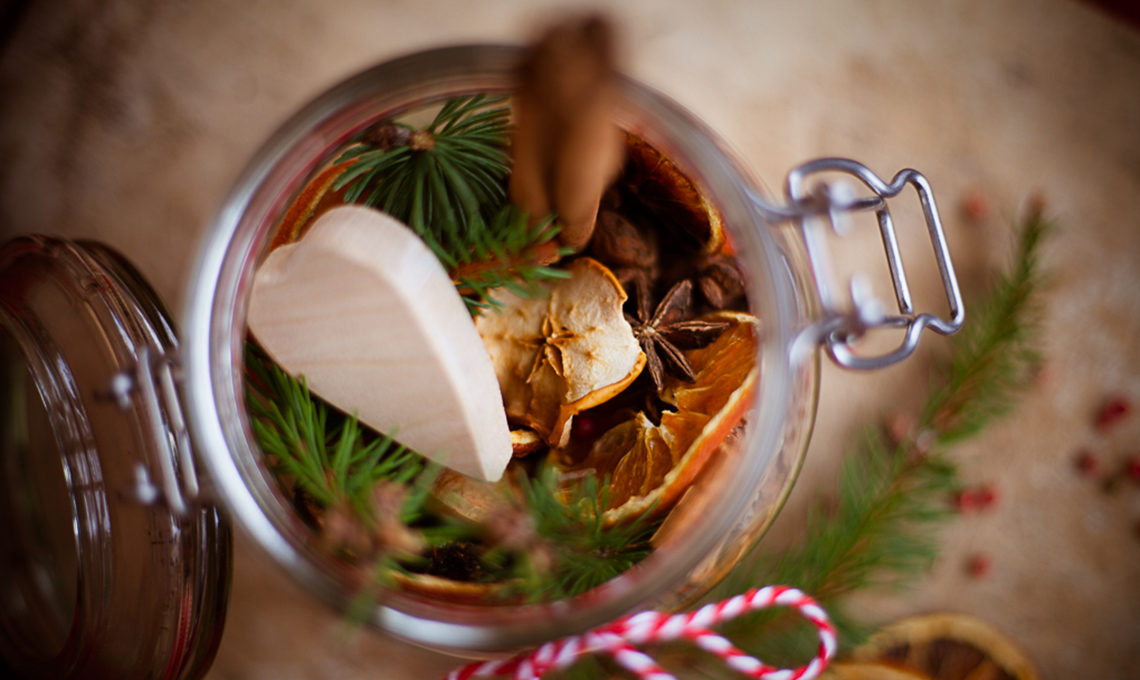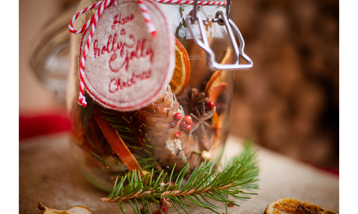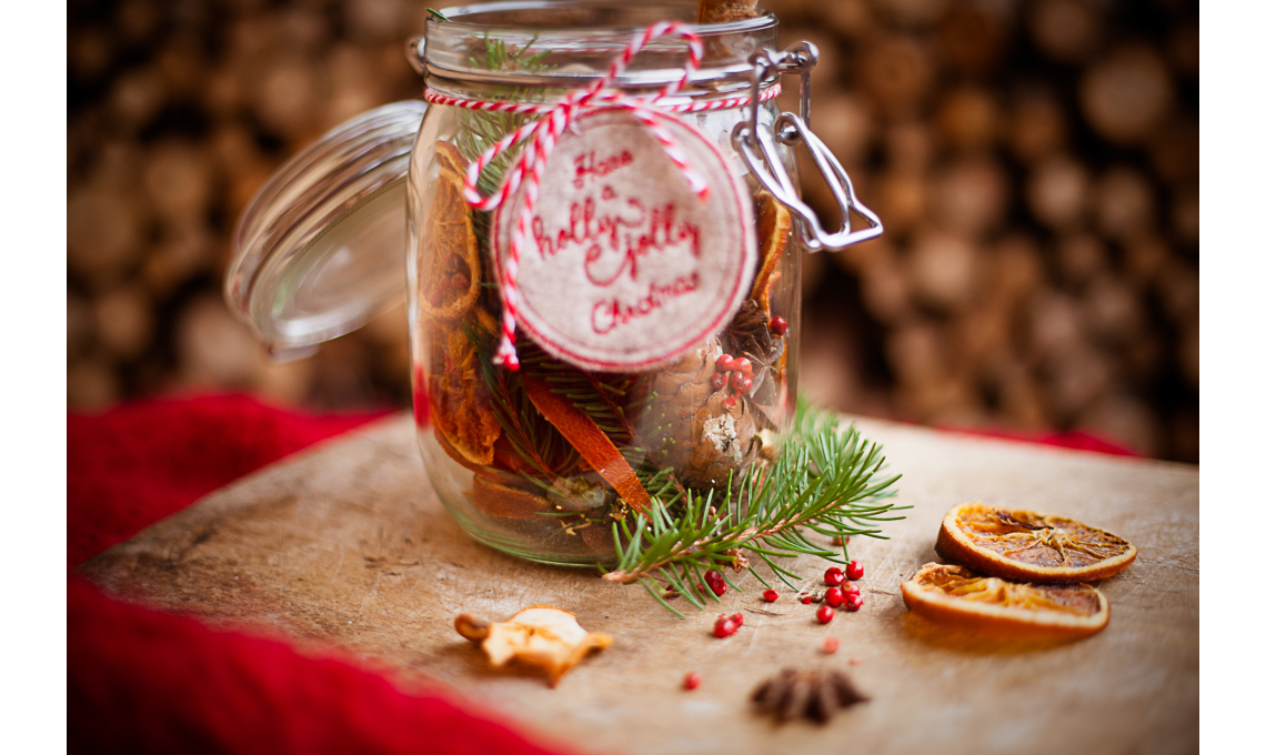 - Riversa il profumato mix natalizio in un vasetto e riponilo nella stanza in cui desideri che sprigioni tutta la sua magica fragranza. Ricorda che quando vorrai ravvivarne il profumo basterà semplicemente agitare il contenitore...et voilà!