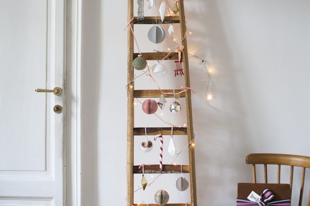 Crea tu stessa delle palle di Natale tridimensionali leggere e poetiche, mono-bi-o-multicolor come preferisci. Perfette per l'albero o altre destinazioni più originali come la scala a pioli che vedi in foto!