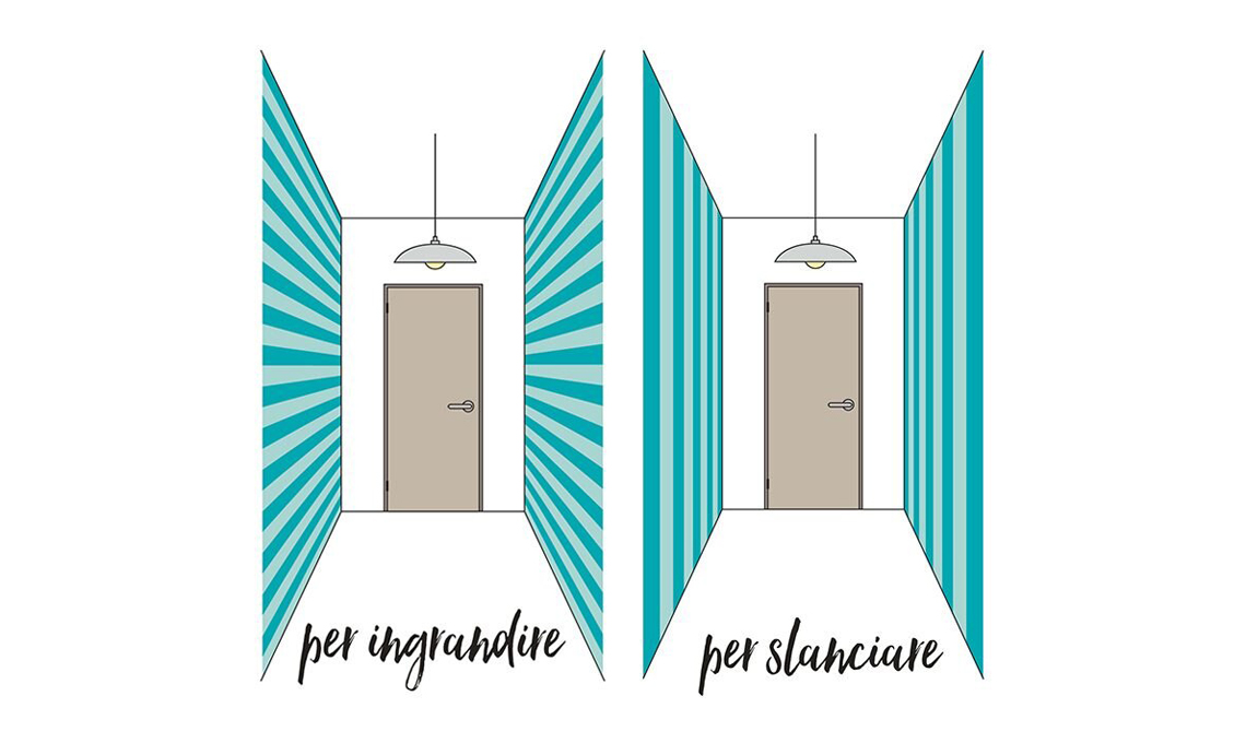 Decora le pareti lunghe con righe orizzontali (anche con carta da parati).