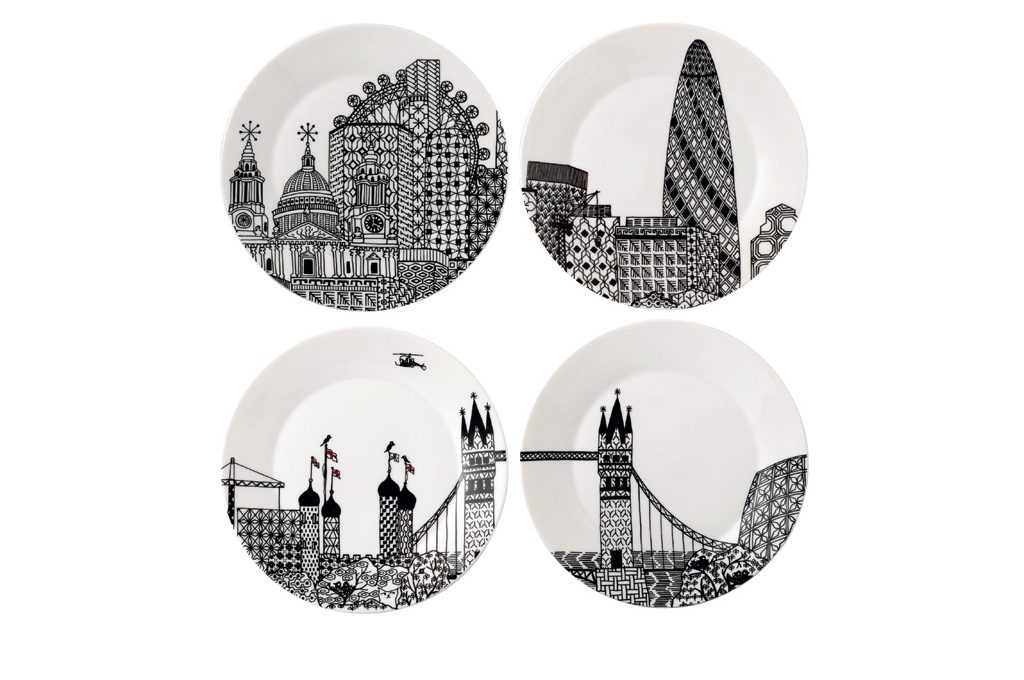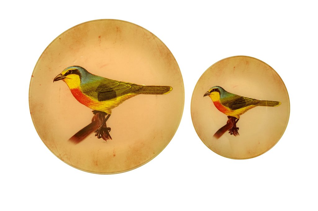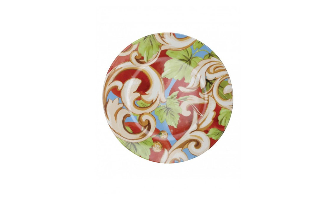 Appartiene al servizio Pomo in porcellana il piatto piano dai decori naturali in colori hot [Brandani]