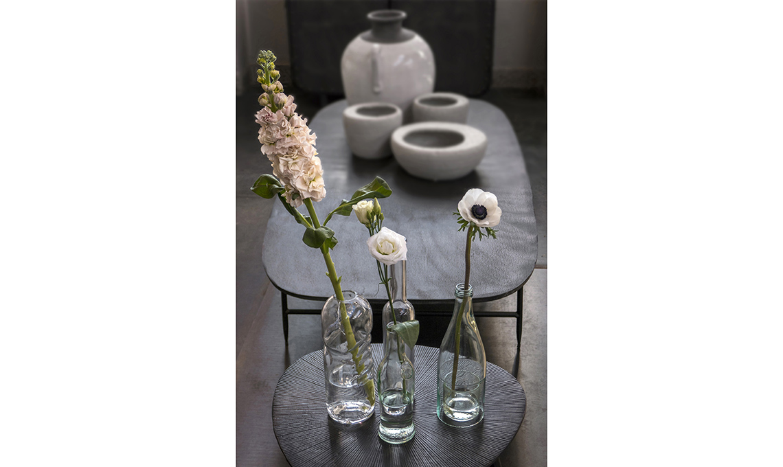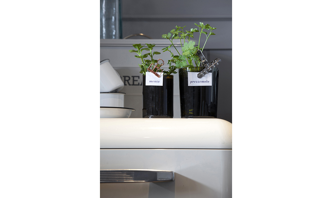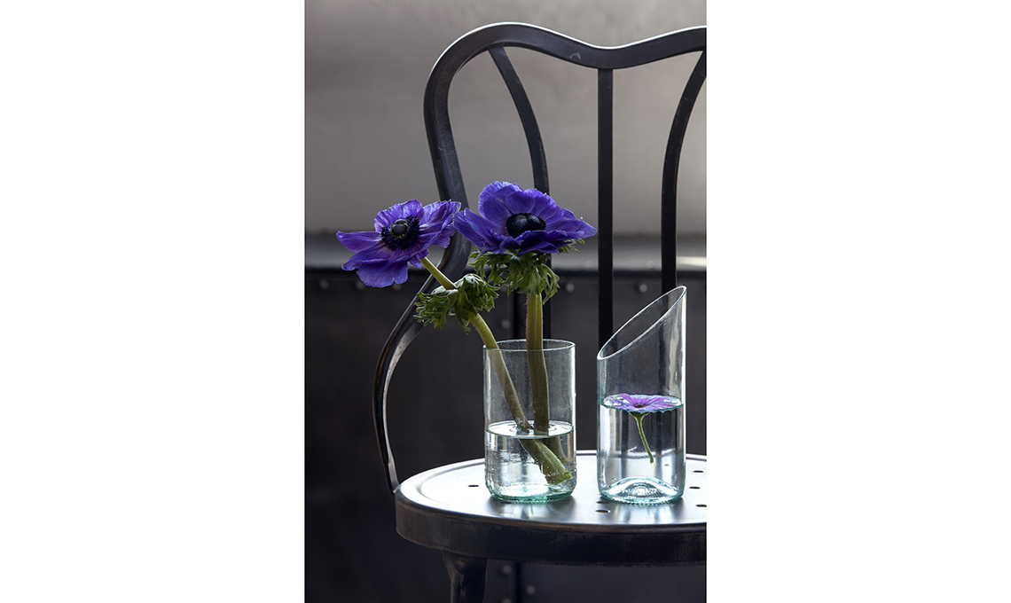 E i pezzi di ‘scarto’ dopo il taglio della parte superiore di una bottiglia di vino. Al mattino, a colazione lo usi come pratico portauovo, nell’ora dell’aperitivo, lo capovolgi ed ecco una ciotolina per salatini e olive.