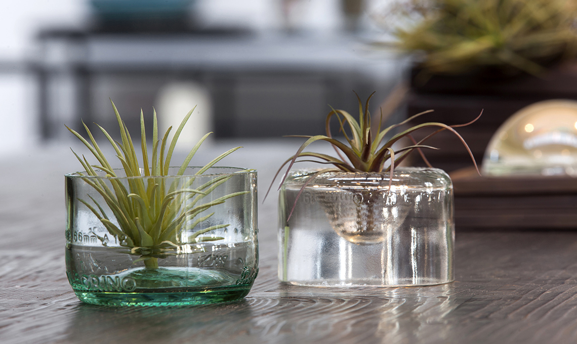 Ti sono avanzati i ‘fondi di bottiglia’ dopo i tagli? Con la carta vetrata, leviga il profilo, aggiungi la ghiaia sul fondo, il terriccio misto, la sabbia e la pianta. Il gioco è fatto, ecco dei cachepot di recupero per le mini piante grasse. Ora devi soltanto ricordare di bagnarle pochissimo per evitare dannosi ristagni d’acqua.