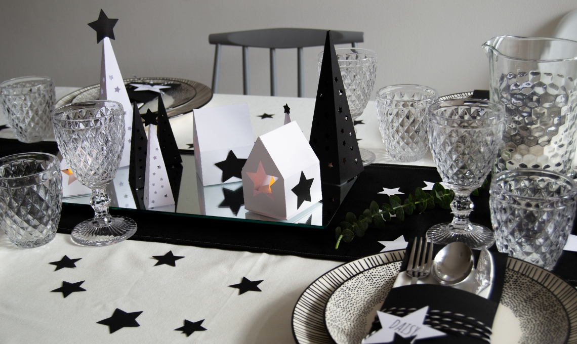 Il Natale si avvicina ed è tempo di pensare a come apparecchiare e rendere magica la tavola. Il Centrotavola di Natale di quest’anno segue il trend bianco e nero creativo e moderno, si ispira al nord Europa nell’uso della carta e nella scelta di forme semplici e iconiche: la casa, l’albero e la stella.