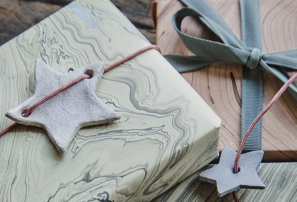 - Per fissare i dischetti sui regali si può usare la colla a caldo se l’avete, io li ho forati ad una estremità con un piccolo trapano. Per un effetto country chic usate spago grezzo o un bakery twine (letteralmente spago da panettiere).