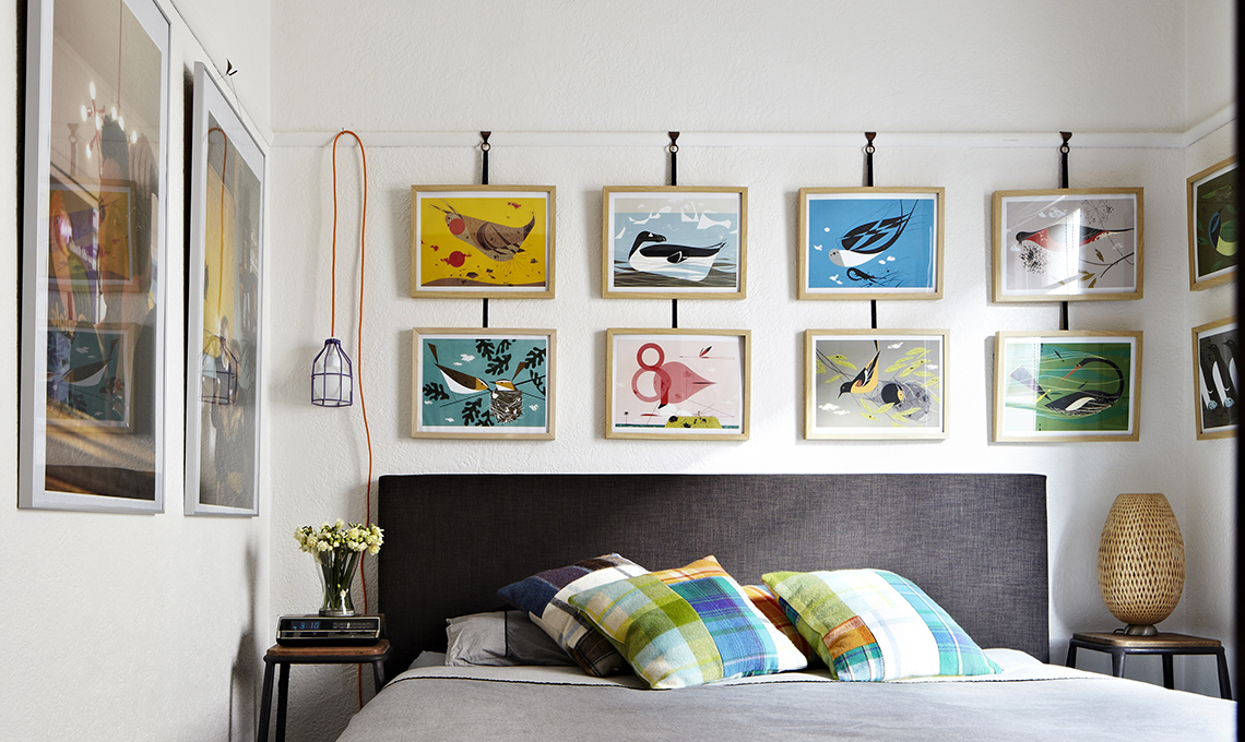 *Se non hai un elemento a parete a cui fissare i quadri, puoi ricorrere a un binario con cavetti e ganci: cerca ‘binario appendi quadri’, a circa € 25 es. su studio.it