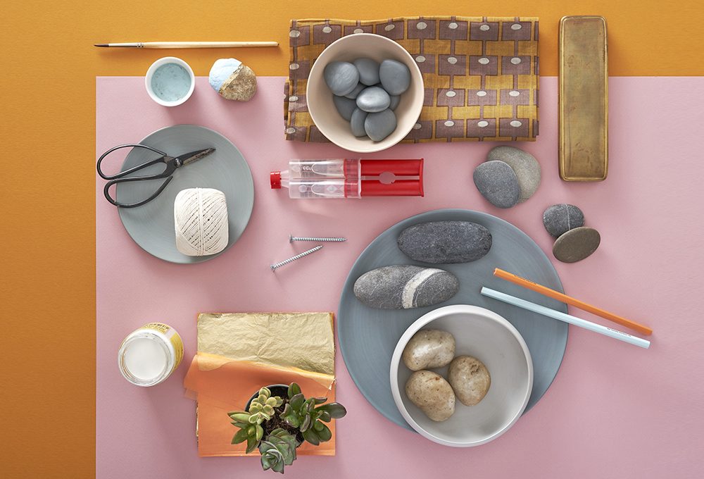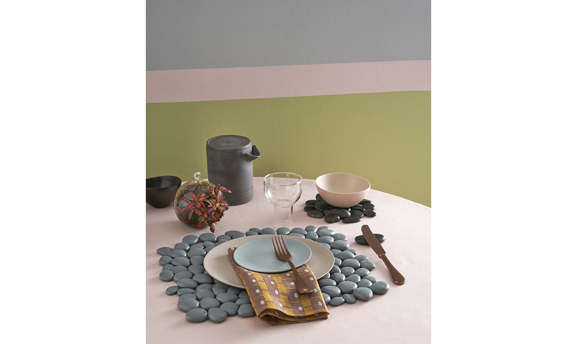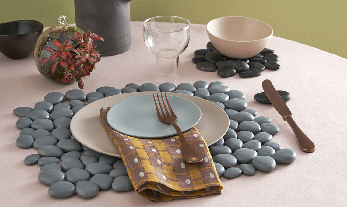 I ciottoli di fiume, i sassi levigati dal mare e i sassolini decorativi per il giardinaggio si trasformano in inedite tovagliette ad alto tasso di... creatività!