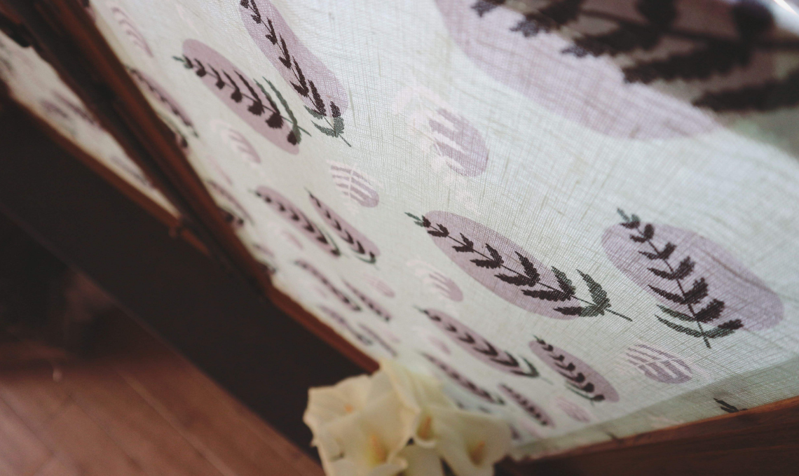 Usa un tessuto leggero per un effetto poco coprente, mentre il lino o il cotone se vuoi minimizzare la trasparenza. Segui il tutorial e cuci la tua tenda a vetro personalizzata stampando il tessuto su The Color Soup. Ho scelto un lino con fondo chiaro, pois e felci. Il pattern è disegnato da Silvia di Illumino Home Ideas.