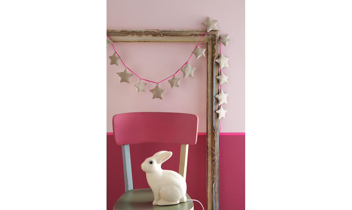 • Realizza in questo modo 15 stelline (o più, se desideri un festone più lungo). Con il cotone fucsia e l’uncinetto intreccia una catenella lunga circa 2 metri. Cuci le stelline alla catenella, mantenendo una distanza sempre costante.