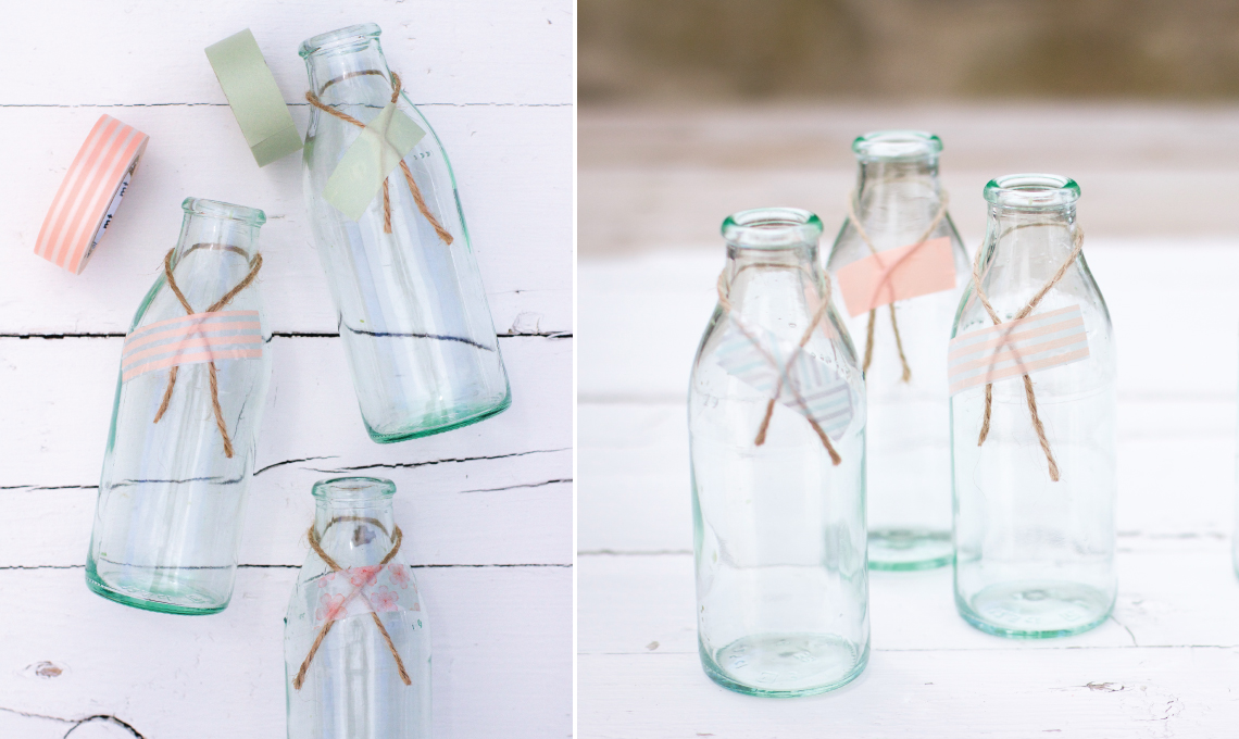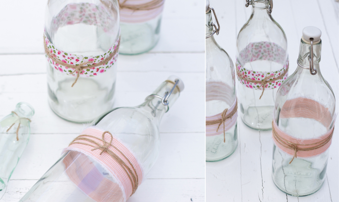 - Arrotola una striscia di stoffa attorno ad ogni bottiglia