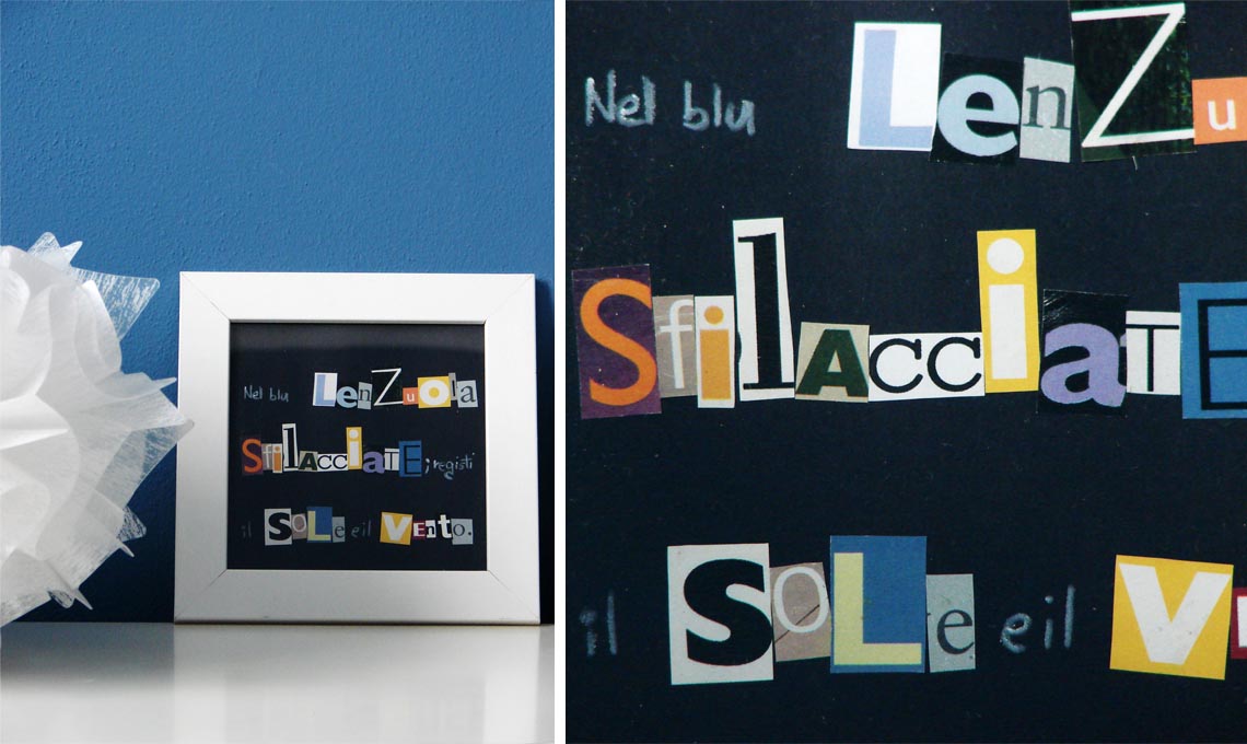 - Quando sarai soddisfatta del risultato, incolla le parole importanti, e poi riempi gli spazi con le altre parole. Infine appendi la tua personalissima frase dove vuoi.