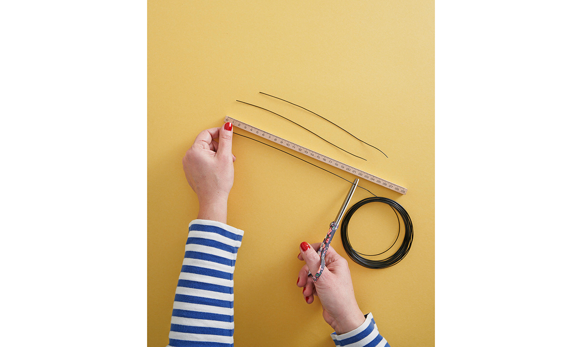 Con le forbici o con la pinza taglia 8 segmenti di filo di acciaio della lunghezza di cm 22.